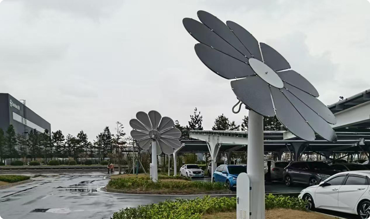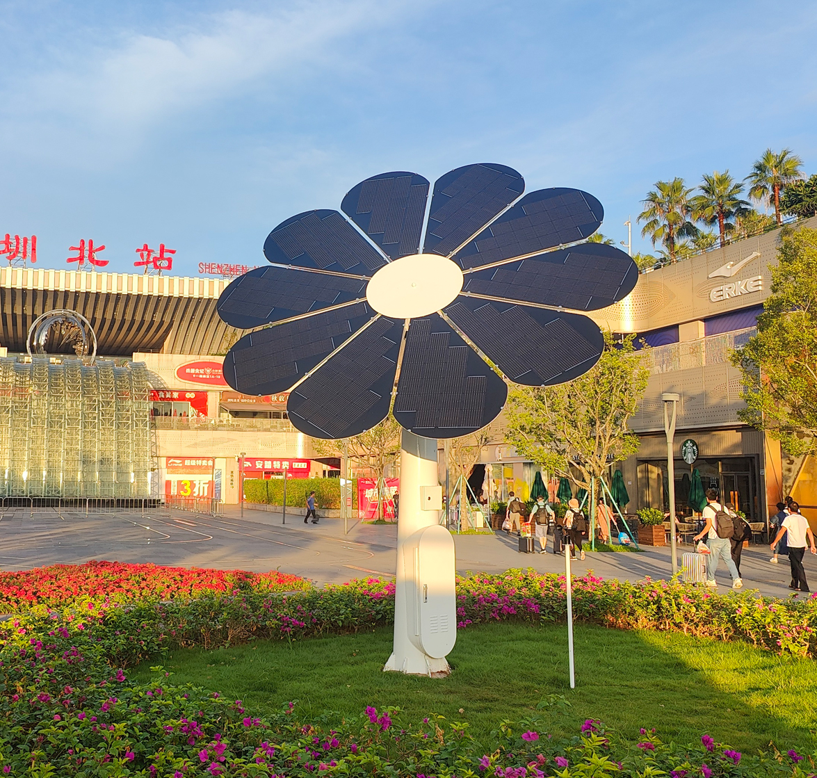 It operates on two independent rotation axes (horizontal and vertical). The precise light-sensing and astronomical algorithm control system can drive the "Solar Sunflower" to rotate 360° in all directions, ensuring that the photovoltaic panel always maintains the best vertical angle with the sunlight, ensuring it perfectly tracks the sun's path.