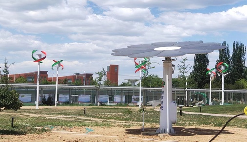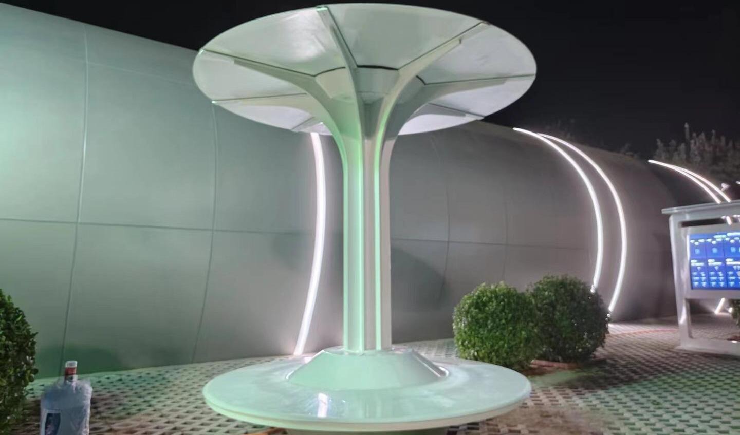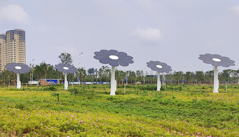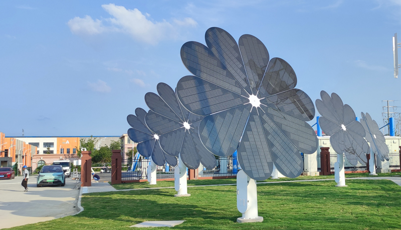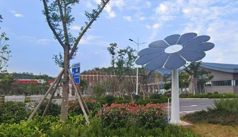 Installed in June 2023 at the Langfang Convention and Exhibition Center, five Dual-Axis Solar Sunflowers use a GPS sun-tracking system for fully automated operation. This ensures precise alignment with the sun's azimuth and elevation to maximize energy generation.