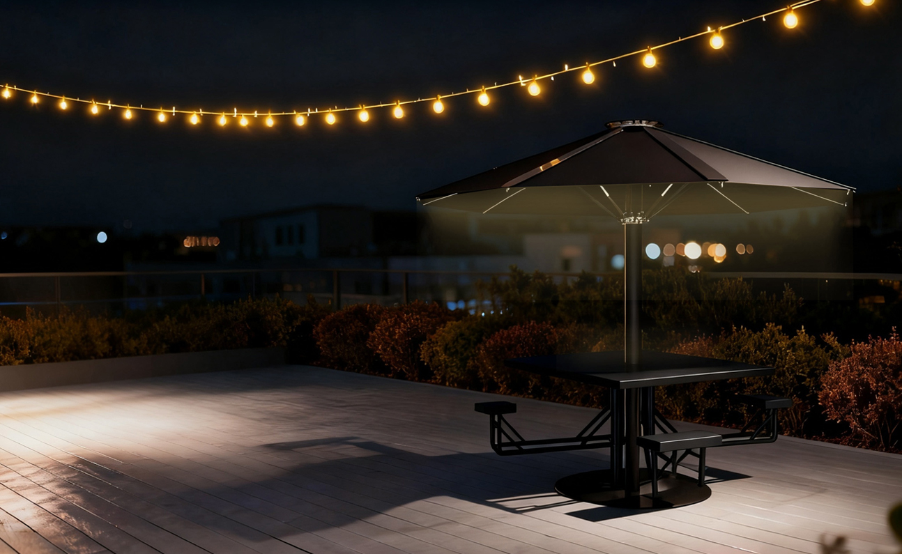 The high-efficiency photovoltaic panels on the umbrella top immediately convert sunlight into clean electricity. Whether it's charging garden lights, charging mobile phones, powering outdoor audio systems, or directly supplying energy to household appliances, it can directly reduce your reliance on mains electricity.